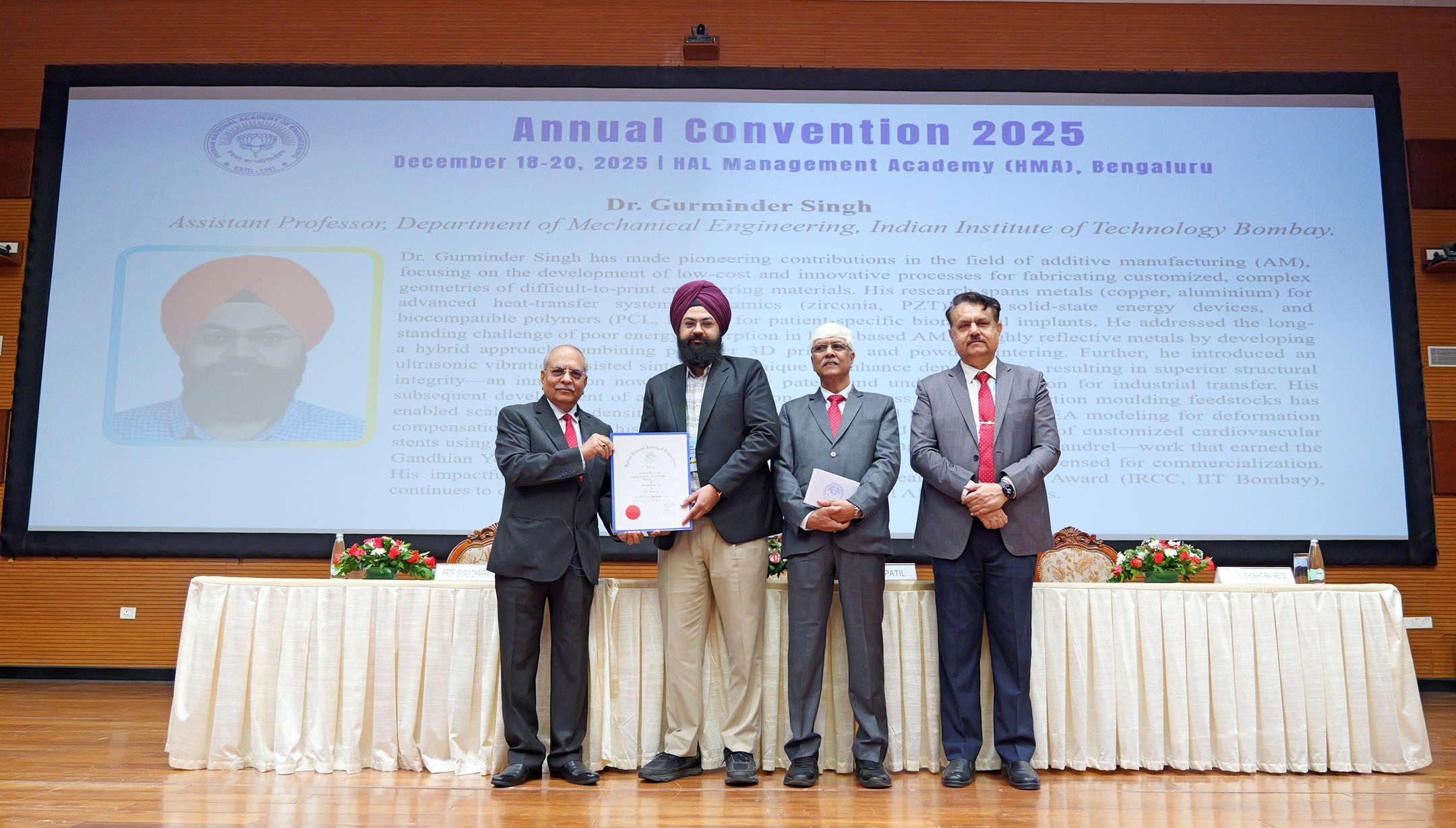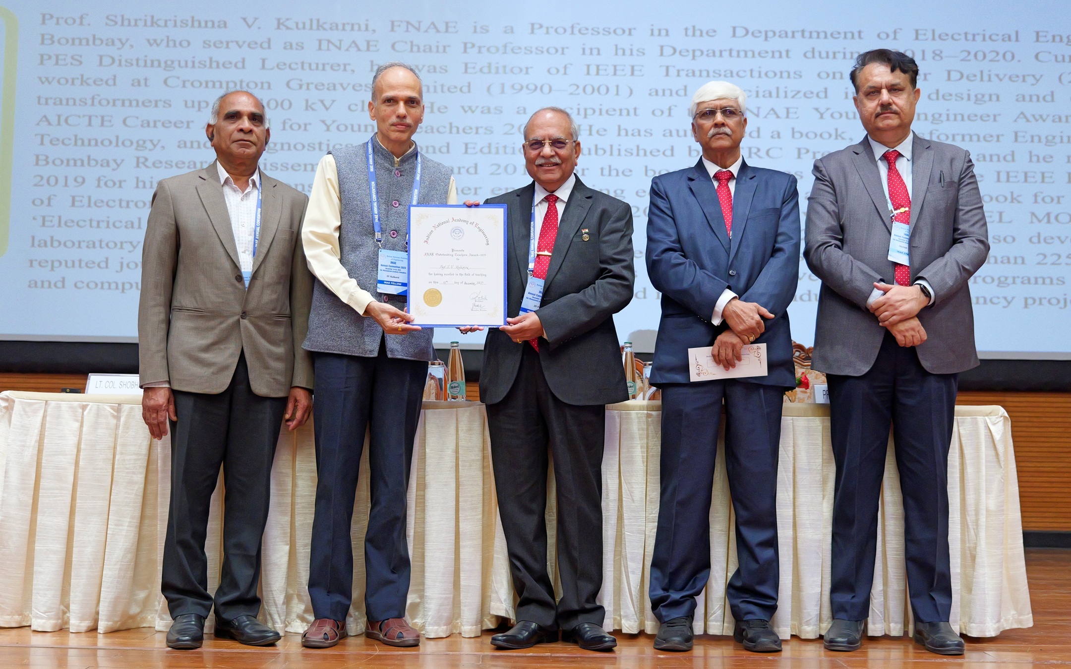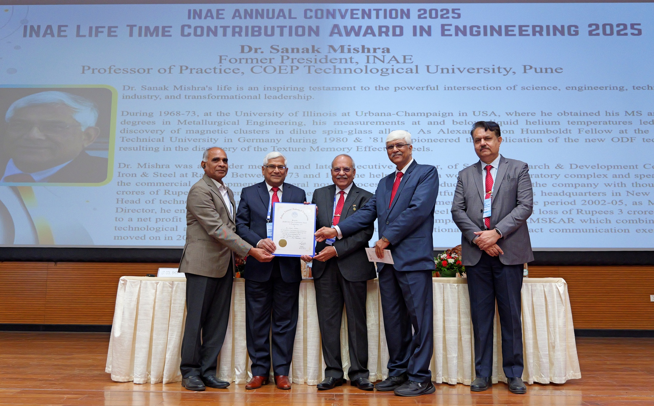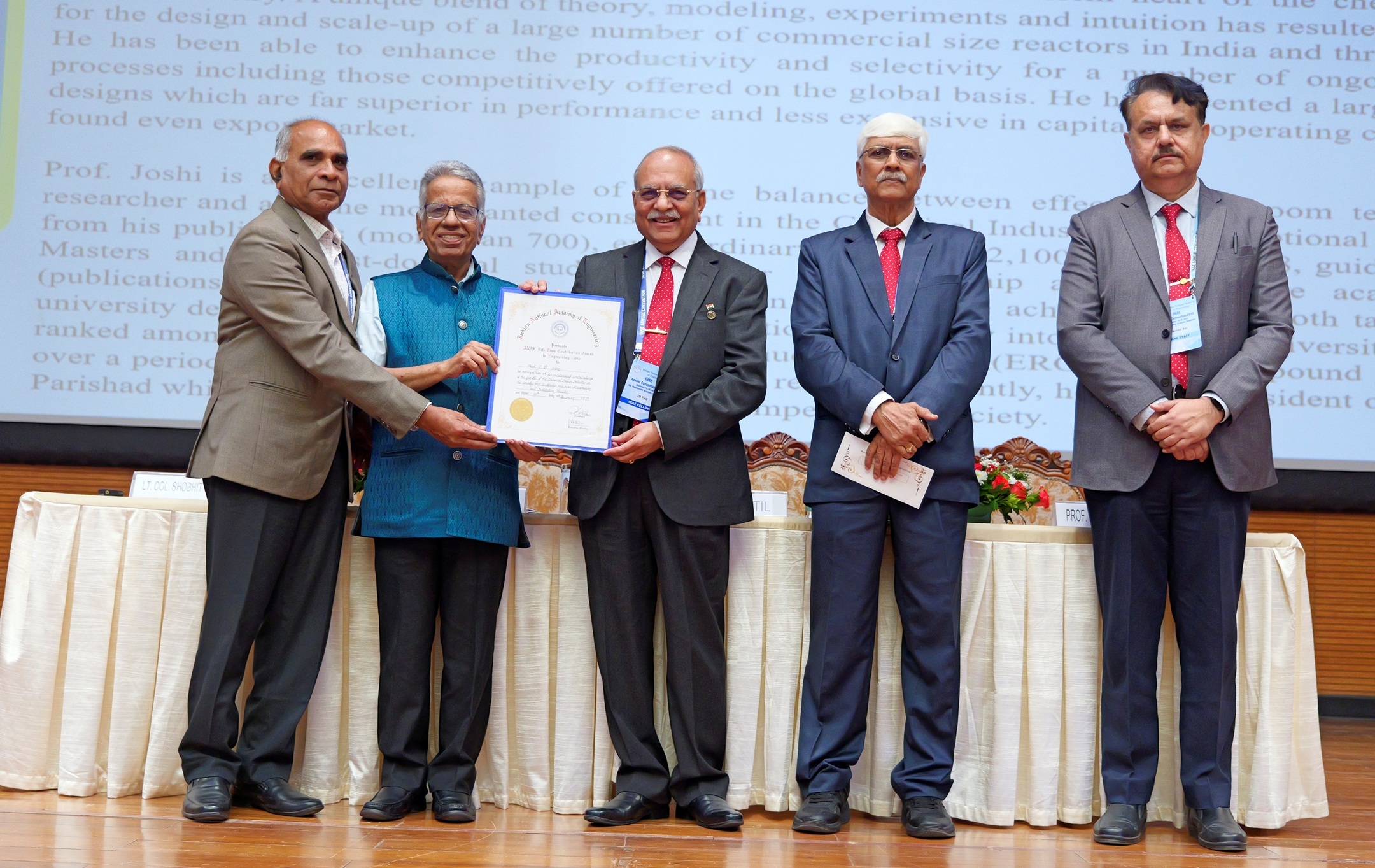 | 1 | Mr JD Patil, FNAE, President, INAE, Former Whole Time Director (Defence & Smart Technologies) and Member of Executive Committee of Management, Larsen & Toubro Limited; Former Director L&T Semiconductor Technologies Limited; Former Chairman L&T MBDA Missile Systems Limited, Member of the Board of IN-SPACe; Chairman Indian Space Association (ISpA); Trustee L&T Employee Trust; Past President and Founder Vice President Society of Indian Defence Manufacturers was conferred with the Life Time Achievement Award of All India Manufacturing Technology Design and Research Conference at IIT-Indore on December 11, 2025. |