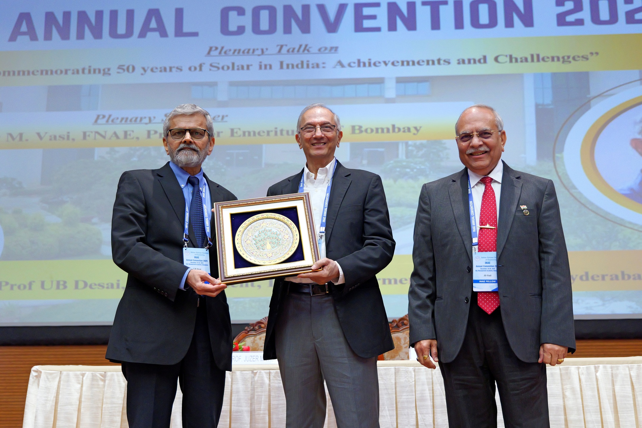 Mr JD Patil, President, INAE felicitating Prof Ashutosh Sharma, Chief Guest during INAE Annual Convention 2025