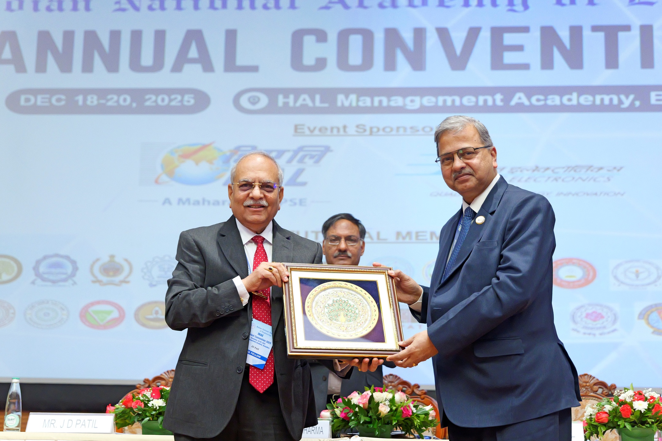 Mr JD Patil, President, INAE felicitating Dr DK Sunil, CMD, HAL- Guest of Honour during INAE Annual Convention 2025