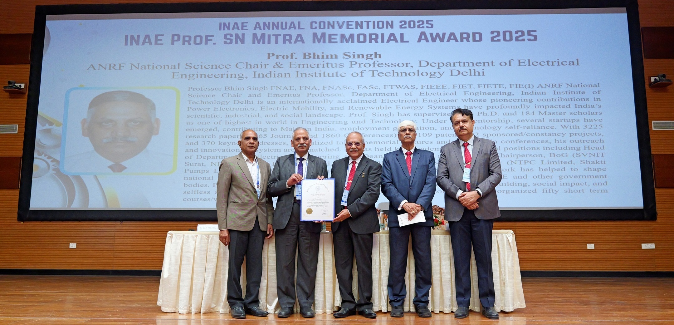 | 6 | Prof. A.B. Pandit, FNAE, Vice Chancellor, Institute of Chemical Technology, Mumbai and former Vice-President, INAE has been conferred the “Rashtriya Vigyan Puraskar 2025-Vigyan Shri Award” in the field of Engineering Sciences by the Government of India in recognition of his exceptional contributions in pioneering research in chemical engineering, process intensification, and translational research has shaped generations of scientists, innovators, and entrepreneurs. |