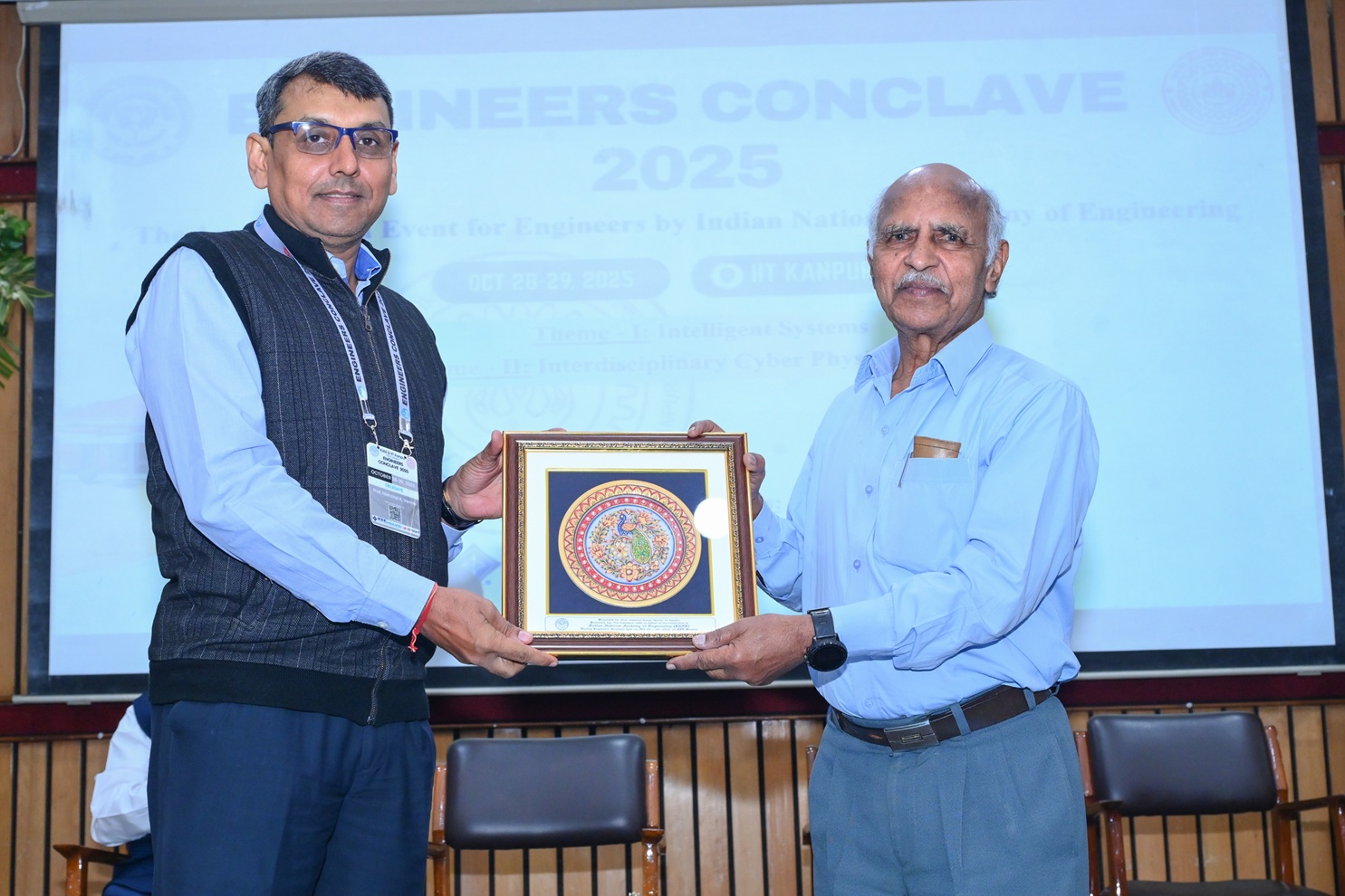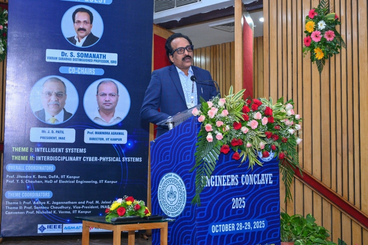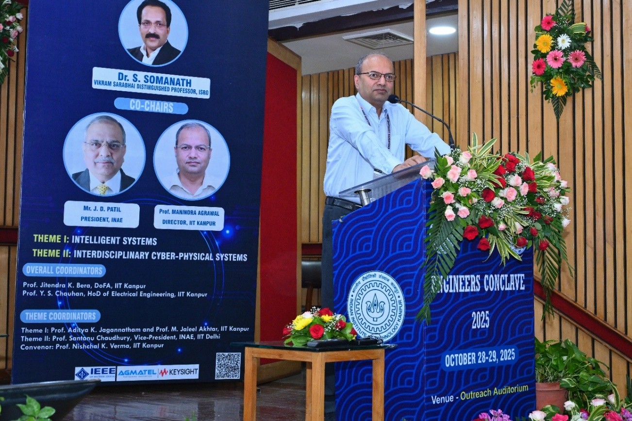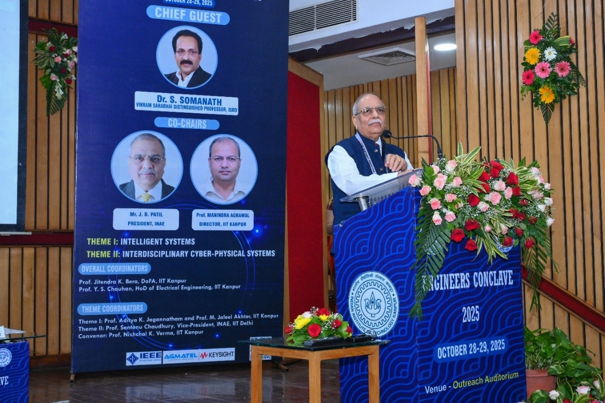 This year twelfth edition of the Engineers Conclave was jointly organized by the Indian National Academy of Engineering (INAE) and the Indian Institute of Technology (IIT) Kanpur on October 28–29, 2025, at IIT Kanpur. The central theme of the Conclave was “Cyber Physical Systems”, With the two themes focusing on “Intelligent Systems” coordinated by Prof. Aditya K Jagannatham, Professor, Department of Electrical Engineering, IIT Kanpur and “Interdisciplinary Cyber Physical Systems” coordinated by Prof. Santanu Chaudhury, Vice-President, INAE, former Director IIT Jodhpur & Professor, Department of Electrical Engineering, IIT Delhi,” which are critical for India’s economic growth, social development, and national security, enabling the fusion of digital and physical infrastructure; the conclave addressed the challenges and opportunities for advancement in these niche areas of engineering importance to the Nation. During the conclave, notable engineering luminaries deliberated on the state-of-the-art technologies and latest R&D developments in the overarching area of Cyber Physical Systems and delivered illuminating technical talks on the two critical themes of “Intelligent Systems” and “Interdisciplinary Cyber Physical Systems”.